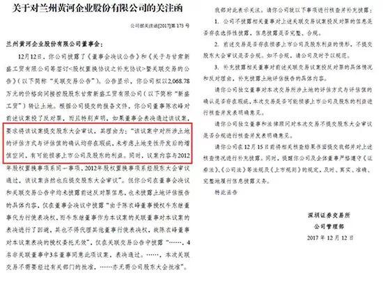 董事質疑蘭州黃河賤賣土地 深交所發函關注(資料來源:深交所)