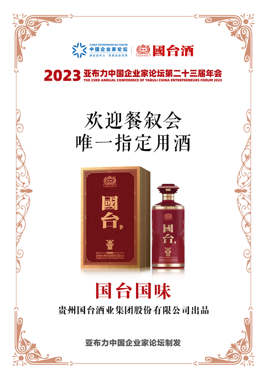 作為“亞布力中國企業家論壇TOP合作伙伴”,國臺將在本次年會期間舉行“大國醬香 國臺國味”國臺·中國新名酒之夜——2023亞布力年會歡迎餐敘會,為與會嘉賓奉獻一瓶來自茅臺鎮的正宗醬香美酒。同期,國臺將上市發布新品“國臺國味”酒。