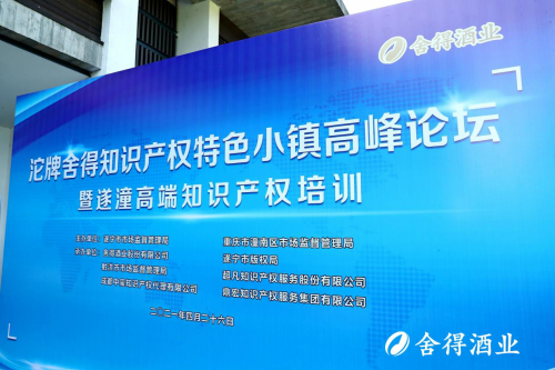4月26日,沱牌舍得知識產權特色小鎮高峰論壇暨遂潼高端知識產權培訓會議在沱牌舍得文化旅游區藝術中心舉行,四川省市場監督管理局知識產權規劃發展處處長周廣平,遂寧市市場監督管理局(市知識產權局)黨組書記、局長肖利國,重慶市潼南區市場監督管理局副局長、黨組成員王旭,舍得酒業生產基地副總經理余東、風控中心總經理邱明等領導出席了活動。