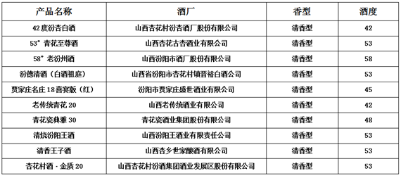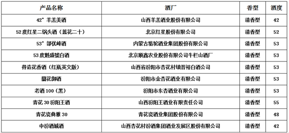 附:2020年首屆“杏花村”杯全國清香類白酒創新產品評選獲獎產品(按產品名稱拼音排序)