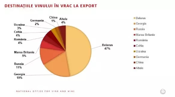 白俄羅斯、格魯吉亞以及俄羅斯進口的葡萄酒總量占摩爾多瓦出產散裝葡萄酒總量的77%。其中,白俄羅斯占比達47%。