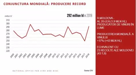 摩爾多瓦國家葡萄與葡萄酒局表示,在過去10年里,2018年全球2920萬千升,相反,包括摩爾多瓦在內的世界葡萄酒消費量小跌至2440萬千升。