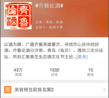 據記者了解,該論壇的主題是“尋找你心目中的好酒”。以酒為媒,邀齊魯英豪談天下酒事;暢所欲言,品華夏名酒論心中好酒。第三屆中國(景芝)生態酒文化節暨“齊魯論酒”的網絡活動在不到一周的時間內,參與人次突破40萬,熱度一度保持新浪-美食美酒話題的前兩位。