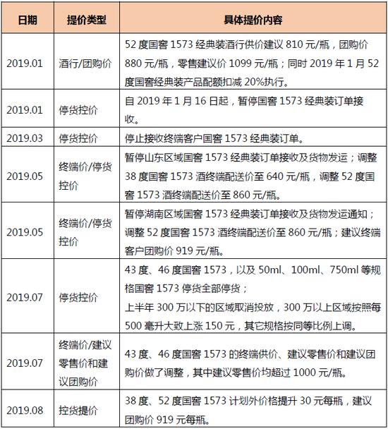 據不完全統計,除了上述控貨,年初至今瀘州老窖對國窖1573相關的控貨提價動作已經多達8次。