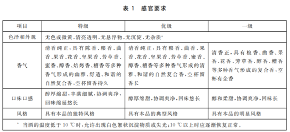 在感官指標方面,新國標從色澤外觀、香氣、口味口感、風格4個角度,分別對特級、優級和一級產品提出明確要求,并要求具有本品的獨特、典型、明顯風格。如下圖所示: