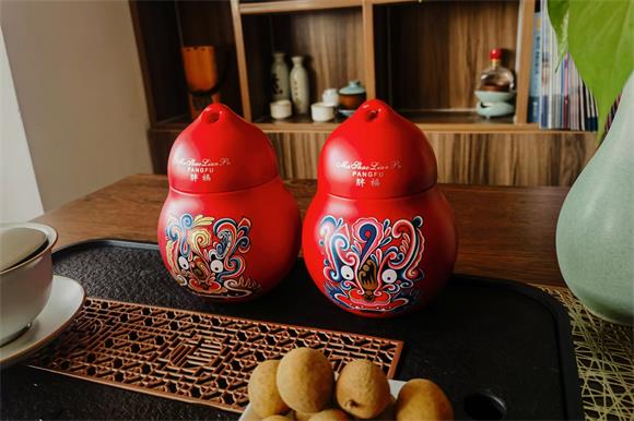 而福祿門神酒的瓶型設計同樣巧妙,瓶型選用葫蘆造型,整體圓潤大方、憨態可掬,同時既融合了龍鳳版馬勺的小孔設計,也將胖福“體態豐盈”的富貴美感發揮了淋漓盡致。整體來看,福祿門神酒富態豐盈的葫蘆造型更添“福祿”之美意,同時搭配通體純正的中國紅色調,熱情奔放、喜慶祥瑞氣氛,天然讓人與之親近。