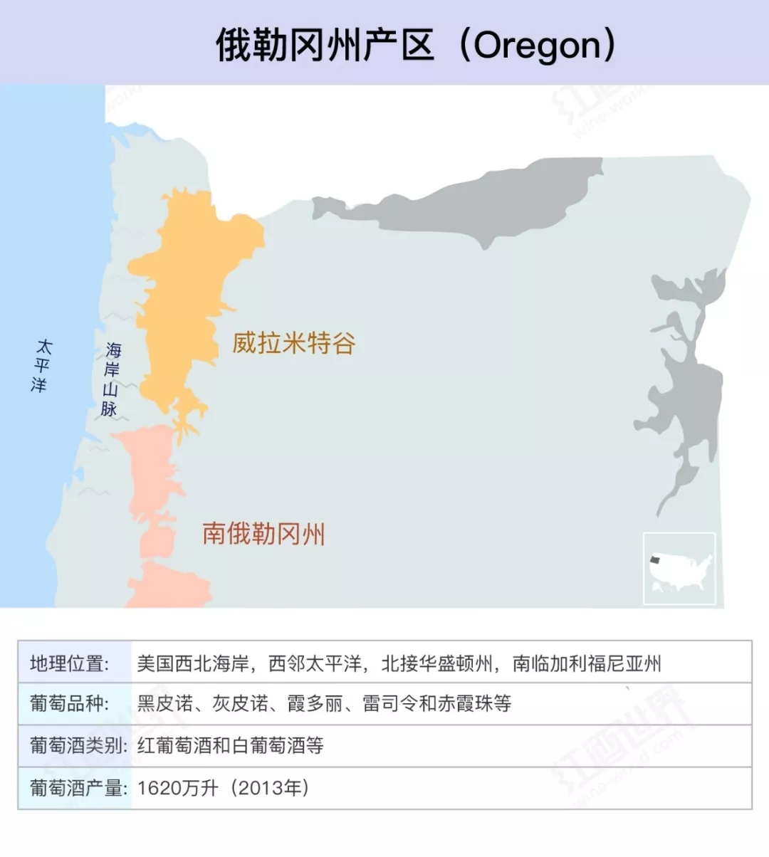 俄勒岡州(Oregon)坐落在美國北緯45°的地方,西臨太平洋,以出產(chǎn)優(yōu)質(zhì)的黑皮諾(Pinot Noir)而知名。