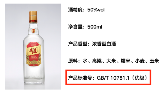 白酒的產品標準可分為國家標準、行業標準、地方標準或者是經過備案的企業標準的編號,由標準代號、標準發布的順序號和標準發布的年號組成。其中,強制性國家標準(GB)和推薦性國家標準(GB/T)可信度最高。