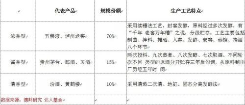 按照不同的口味劃分,可以把白酒行業分為濃香型、醬香型、清香型、其它地方特色的非主流口味(占比僅5%左右)。