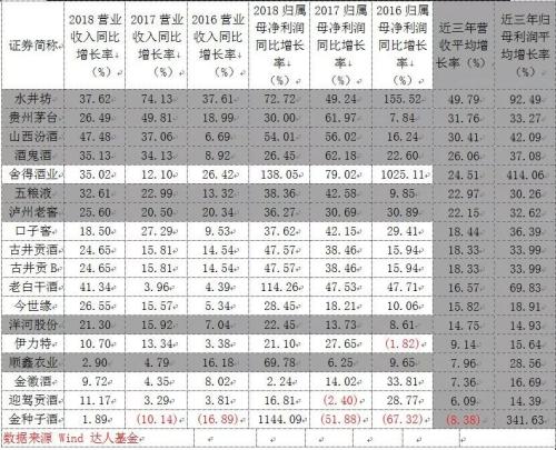 下表中羅列出行業內上市公司最近三年營收及凈利狀況,水井坊(48.50 -0.31%,診股)、貴州茅臺、山西汾酒(64.75 +2.53%,診股)、酒鬼酒(25.14 -1.91%,診股)、五糧液、瀘州老窖、洋河股份、順鑫農業(45.05 +1.24%,診股)是行業內全國各地區銷量相對分散的幾家企業。