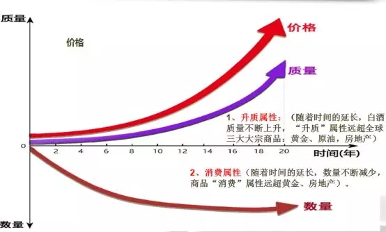 由上圖可以看出,中國白酒商品的時間價值投資屬性分為增值屬性與消耗屬性,這是其他商品如房子、原油、黃金、有色金屬、大豆、農(nóng)產(chǎn)品、還有電器商品、手機商品……等都無法具備的商品根本屬性,直觀說就是中國傳統(tǒng)白酒具有的時間屬性可通過時間創(chuàng)造財富。