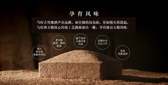 純糧釀。小麥孕育出優質的微生物群,大米協助低溫緩慢發酵,高粱賦予豐富的單寧,玉米和糯米帶來醇厚凈爽的靈動口感;相比普通白酒45-60天的發酵時間,延長至90天讓糖化、醇化、酯化更充分,風味物質更豐富,同時減少上頭物質的產生。