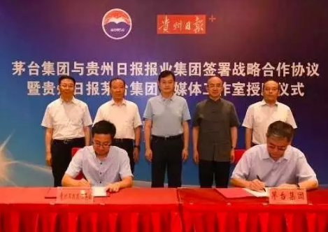 8月20日上午11時,美酒河畔,茅臺集團與貴州日報報業集團簽署戰略合作協議,明確將攜手融合、共創傳奇。作為強強聯合的標志性產物,貴州日報茅臺集團全媒體工作室宣布掛牌成立。