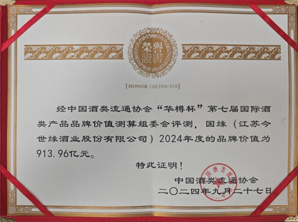 9月27日,“華樽杯”第十六屆中國酒類品牌價值200強暨第七屆全球酒類產(chǎn)品100強頒獎盛典在北京舉辦。其中,今世緣以1646.68億元的品牌價值,位列中國白酒品牌價值第11名,同期國緣品牌以913.96億元的品牌價值,又一次入選了“全球酒類產(chǎn)品百強品牌”榜單。
