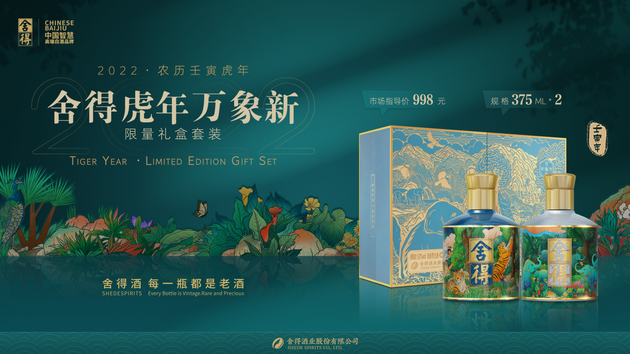 活動現場,本次超級品牌日的主打產品——“舍得•虎年萬象新限量禮盒套裝”重磅亮相。作為全國首款以“生態環保”為主題的文創白酒禮盒,其創作靈感來自“生態環保”的真實事例。2021年,東北虎“完達山一號”在黑龍江被放歸山野,南方的亞洲象群開啟了漫無邊際的尋家之旅。虎與象回家的夢,牽動億萬國人的心。舍得酒業數十年堅持生態釀酒,用大愛之心釀制了“舍得•虎年萬象新限量禮盒套裝”,致敬國人為“綠水青山”奉獻之舍得精神。