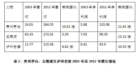 2003年至2012年,瀘州老窖的營(yíng)業(yè)收入和凈利潤(rùn)每年都是同比增長(zhǎng)的,無(wú)一年不是如此。2003年至2012年,瀘州老窖的營(yíng)業(yè)收入從2003年的11.77億元人民幣增加到2012年的115.56億元人民幣,增長(zhǎng)8.82倍;其凈利潤(rùn)從2003年的0.42億元人民幣增加到2012年的43.9億元人民幣,增加10.35倍。凈利潤(rùn)增長(zhǎng)超過(guò)營(yíng)業(yè)收入的增長(zhǎng)。