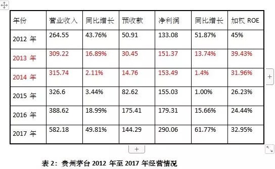 貴州茅臺(tái)在2012年至2015年期間的經(jīng)營(yíng)情況如表2所示: