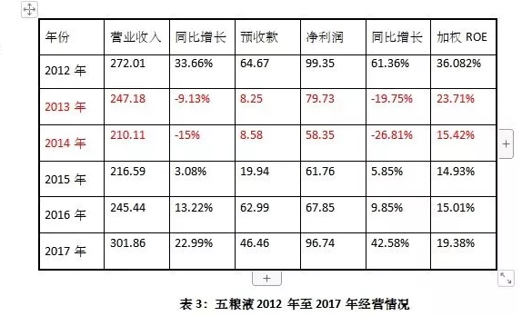 五糧液在2012年至2015年期間的經(jīng)營(yíng)情況如表3所示: