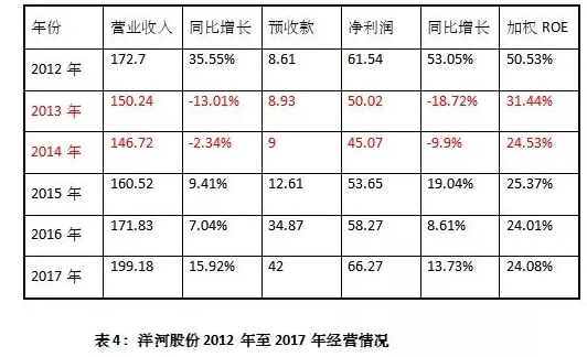 洋河股份在2012年至2015年期間的經(jīng)營(yíng)情況如表4所示: