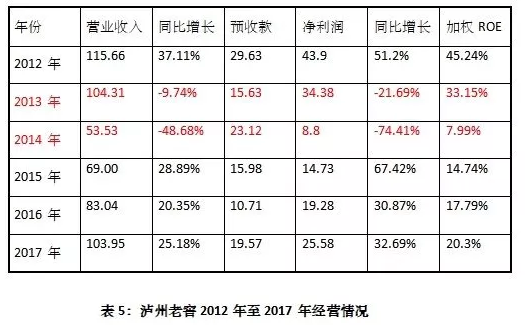 瀘州老窖在2012年至2015年期間的經(jīng)營(yíng)情況如表5所示: