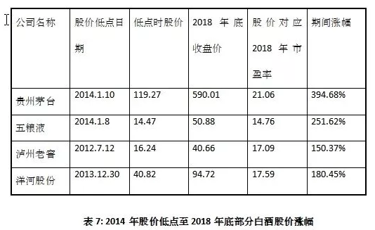 那么,這四家公司的股票,從周期調(diào)整低點(diǎn)到2018年底,股價(jià)上漲了多少?具體情況見(jiàn)表7。