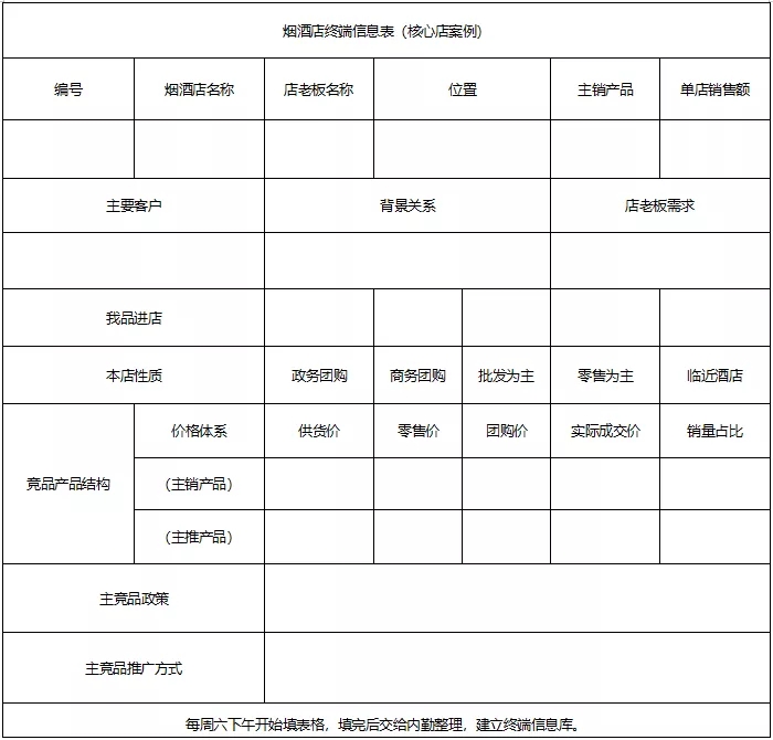 1、一定要足夠了解你的市場所有的終端情況,建立健全的終端信息檔案表。例如: